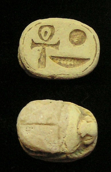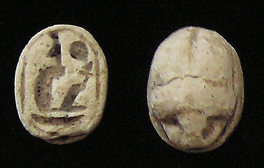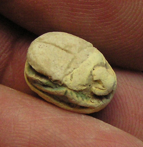 right (Bull head, Bear, Lion?) NOTE: This Scarab can be strung on a necklace, if desired. Size and Condition: This Scarab is about 15 mm (about 5/8 inch) long and it is mostly a soft light brown color BUY NOW $179 plus shipping