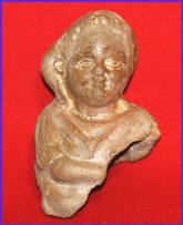 Nopilioa, 600-900 AD, Veracruz Statue fragment Classic Veracruz culture (or Gulf Coast Classic culture) refers to a cultural area in the north and central areas of the present-day Mexican state of Veracruz, a culture that existed from roughly 100 to 1000 CE, or during the Classic era.[1] El Tajin was the major center of Classic Veracruz culture; other notable settlements include Higueras, Zapotal, Cerro de las Mesas, Nopiloa, and Remojadas, the latter two important ceramics centers. The culture spanned the Gulf Coast between the Pánuco River on the north and the Papaloapan River on the south. Size: 1 7/8-inch tall Condition: Excellent condition, with good mineral deposits, Stable NOTE: A group MesoAmerican antiquities recently aquired were mounted in a shadow box. Substantial residual glue and wooden mounting block is on the back of this piece. BUY NOW $99.95 plus shipping |