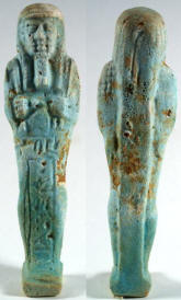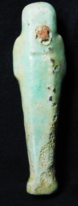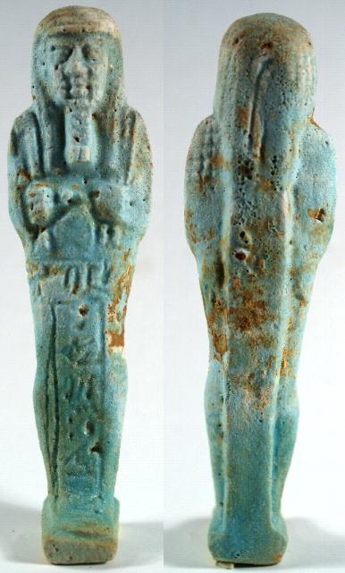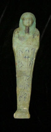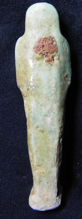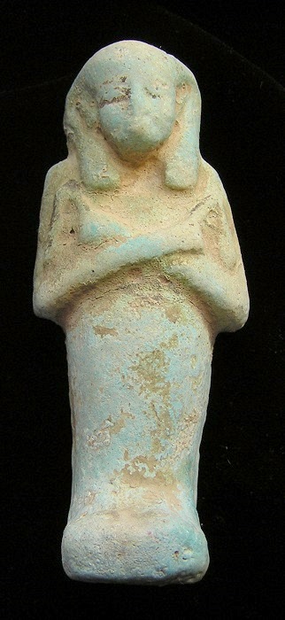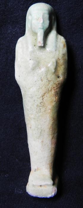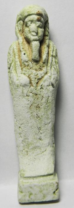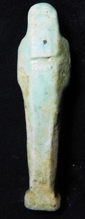 EGYPTIAN TOMB Ushabti - 664 to 525 BC, XXVI Dynasty Hieroglyphs around top and down front HIGH QUALITY !! Historical Context: See above. Hieroglyphs Translation: "Pending..........." Attribution/Description: Date: