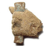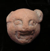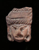 Statue face fragment Size: 1-1/2-inch tall Condition: Excellent condition, with good mineral deposits, Stable NOTE: A group MesoAmerican antiquities recently aquired were mounted in a shadow box. Substantial residual glue (resin or silicome adhesive) used in the mounting is on the back of this piece. BUY NOW $89.95 plus shipping Photo of back |