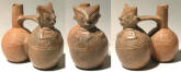 Chimu Zoomorphic Whistle Bottle vessel A fine Chimu Zoomorphic Whistle Bottle vessel from Peru, c. 1100 – 1450 AD. This fine orangeware example is 5-3/4” high and 6" long and features a nicely detailed figure depicted atop the front chamber. The chambers are connected and both are decorated with deeply incised designs. In excellent condition, with good mineral deposits. Ex Sarmiento collection Attribution: Peru, 1100 to 1450 AD Size: 5-3/4-inch high and 6-inch long Condition: Excellent condition, with good mineral deposits. - Please see the picture. BUY NOW $649 plus shipping |