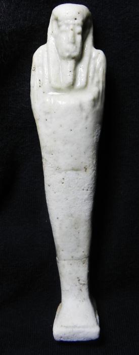 #10790: EGYPTIAN TOMB Ushabti - 664 to 525 BC, XXVI Dynasty Hieroglyphs down front LARGER than most Ushabtis available Historical Context: See above Attribution/Description: Date: