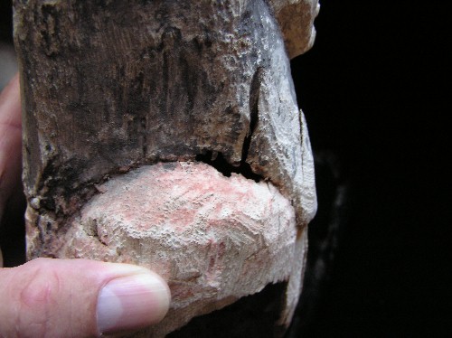 Statue face fragment - LARGE Fragment Size: 4-1/2-inch tall Condition: Excellent condition, with good mineral deposits, Stable NOTE: A group MesoAmerican antiquities recently aquired were mounted in a shadow box. Substantial residual glue (resin or silicome adhesive) used in the mounting is on the back of this piece. BUY NOW $249 plus shipping Photo of back |