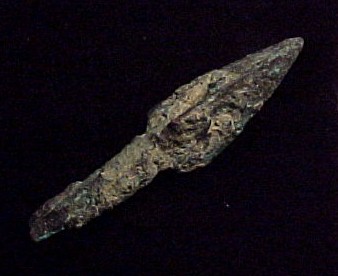 #9669: GREEK Arrowhead - 7th to 6th Century BC, Bilobate-type Blade !! Great Shape !! Very Collectable !! This arrowhead is BRONZE and measures about 39 mm (1 5/8 inches) long. |