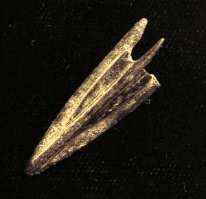 #7762: GREEK Arrowhead - 350 to 250 BC, Type developed by Alexander the Great and his Father (Philip II) Historical Context: The Macedonian empire was founded by Alexander I but carried forward by others including Philip II (Father of Alexander the Great) and Alexander the Great. Philip II developed the army and tactics that enabled Alexander to accomplish his victories. Alexander the Great is considered the greatest military general ever. This arrowhead is BRONZE and measures about 35 mm (1 3/8 inches) long. SOLD $69.95 plus shipping