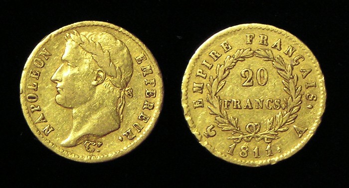 #8767: GOLD Coin - 1811 AD, Napoleon Bonaparte (His Face) Historical Context: See above Obverse: Napoleon in Laurel Wreath
