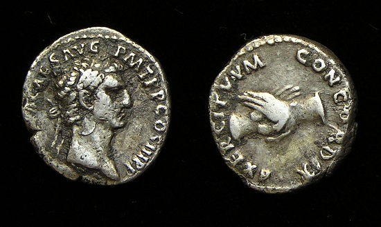 #10621: SILVER Denarius NERVA, 96 AD Beginning of the ADOPTIVE EMPERORS !! and the GOLDEN ERA !! Hands Clasping Historical Context: See above Obv: Nerva SOLD $149 plus shipping