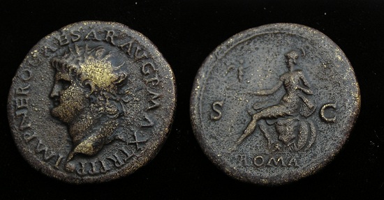 #11835: AE As - 60 AD, NERO, 54 to 68 AD Historical Context: See above Obv: Nero, right facing SOLD $179 plus shipping