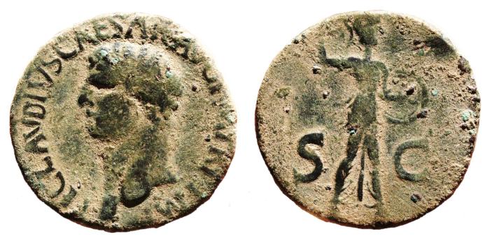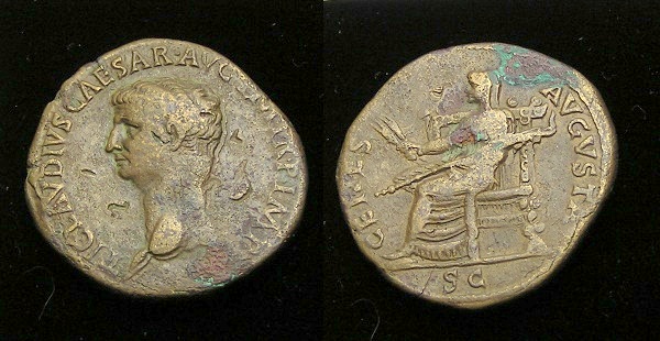 #11141: Bronze AS, Claudius, 41 to 54 AD with CERES Historical Context: See above Obv: Claudius SOLD $199 plus shipping