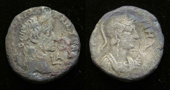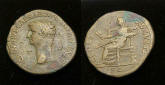 #11295: BRONZE Dupondius - 25 to 5 BC, Antonia - Marc Antony's Other Daughter Mother of Claudius Historical Context: Antonia was the daughter of Marc Anotnoy and Octavia, sister to Octavian, later Emperor Augustus. She was raised along side of Cleopatra Selene II (also known as Cleopatra VIII of Egypt or Cleopatra VIII) a Ptolemaic Princess and was the only daughter to Ptolemaic queen Cleopatra VII of Egypt and Roman triumvir Mark Antony. Obv: Antonia SOLD $239 plus shipping