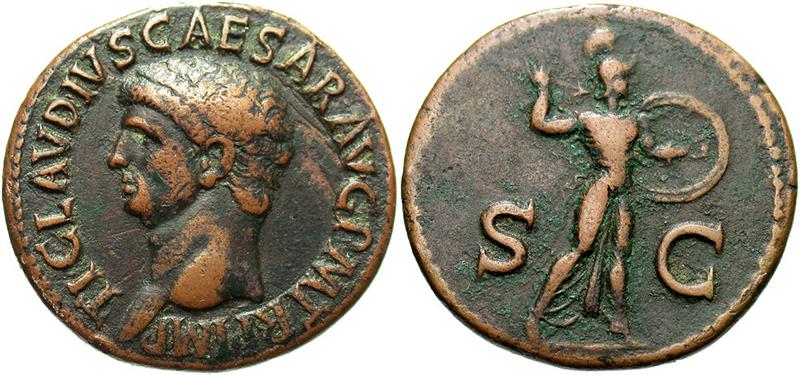 #10268: Bronze AS, CLAUDIUS, 41 to 54 AD with MINERVA Historical Context: See above Obv: Claudius BUY NOW $179 plus shipping