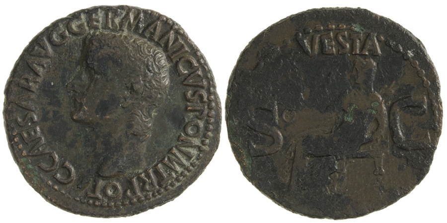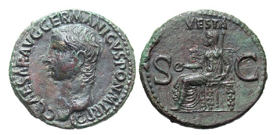 37 to 41AD with VESTA Seated Historical Context: See above Obv: Caligula SOLD $249 plus shipping