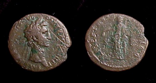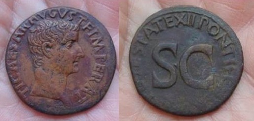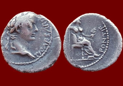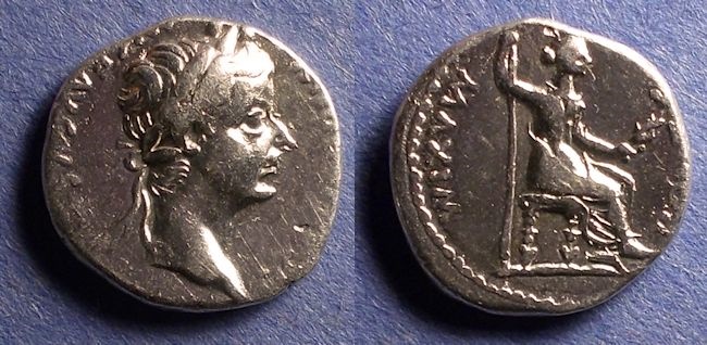 Tiberius, 14 to 37 AD Historical Context: See above Also, this is the coin type that Jesus Christ held when he said "Give unto Caesar that which is Caesar's and give unto the Lord that which is the Lord's" Obv: