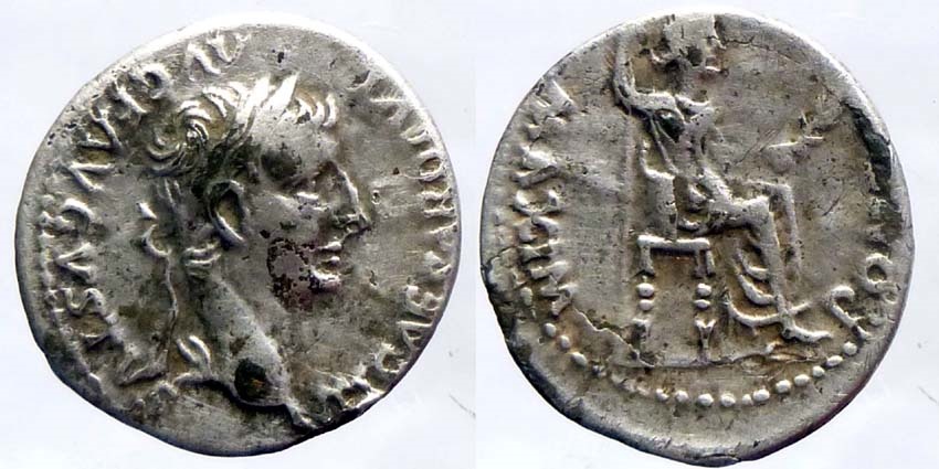 #11865: SILVER Denarius, Historical Context: See above Obv: Augustus SOLD $219 plus shipping |