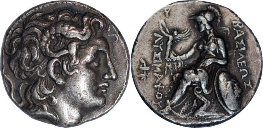 #11879: SILVER TETRADRACHM - 310 BC, Minted by Ptolemy as Satrap of Egypt Historical Context: See above Obv: Alexander the Great in Elephant Skin Cap SOLD $1595 plus shipping
