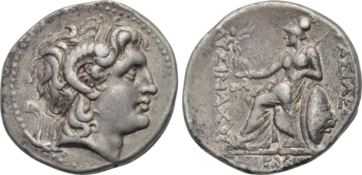 Obv: Alexander the Great as Herakles (Hercules). He is wearing a Lion Skin. The Lion Skin is from